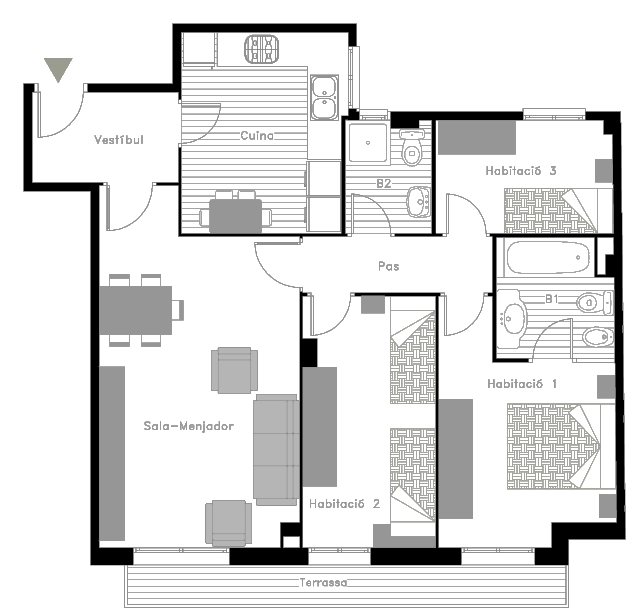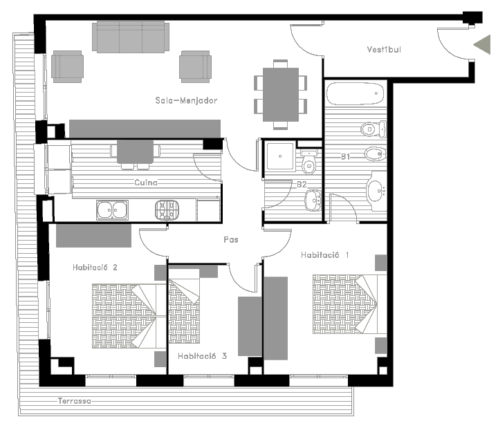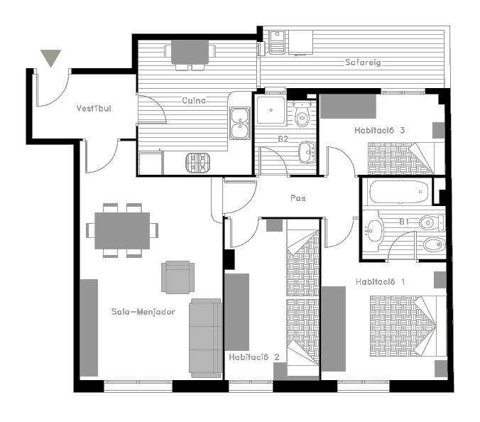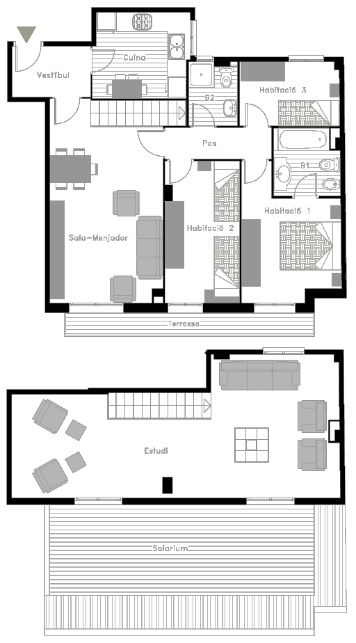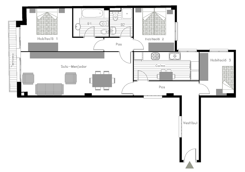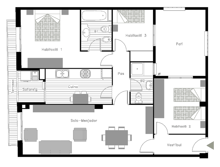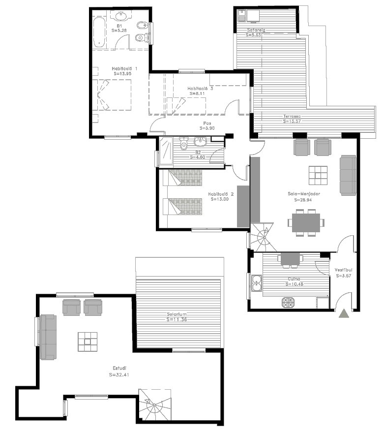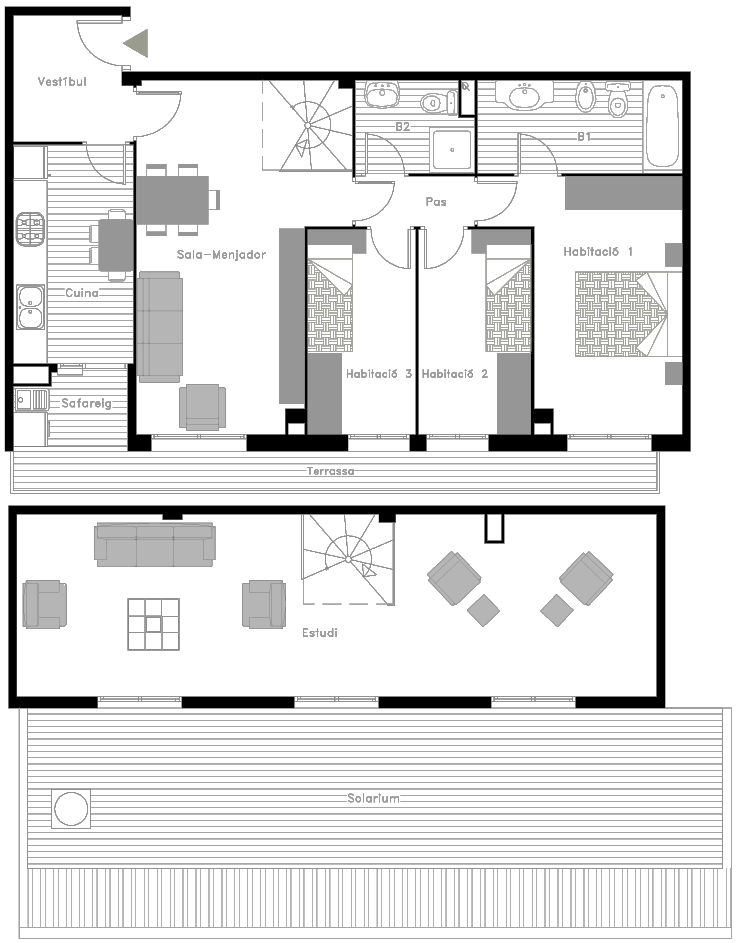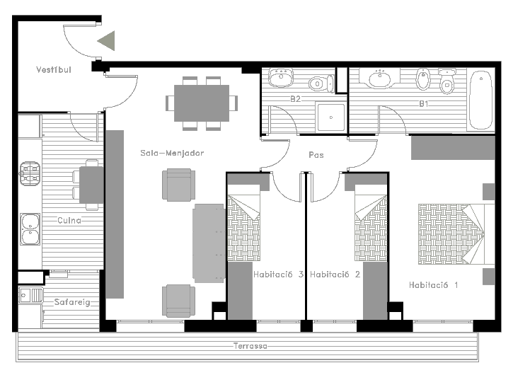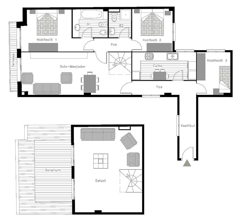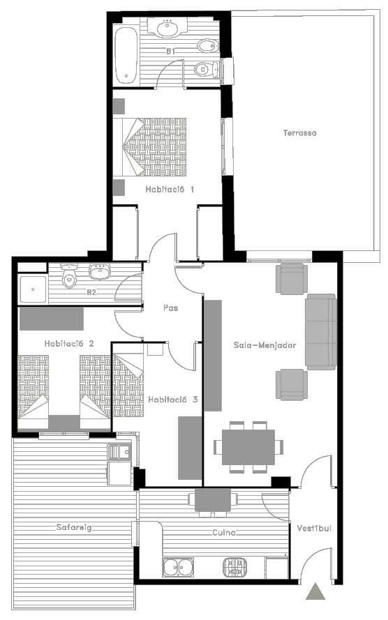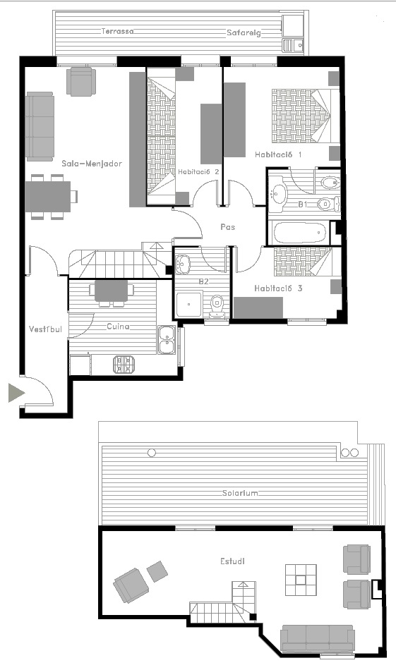 habitaciones individuales, 2 baños completos, amplio comedor,